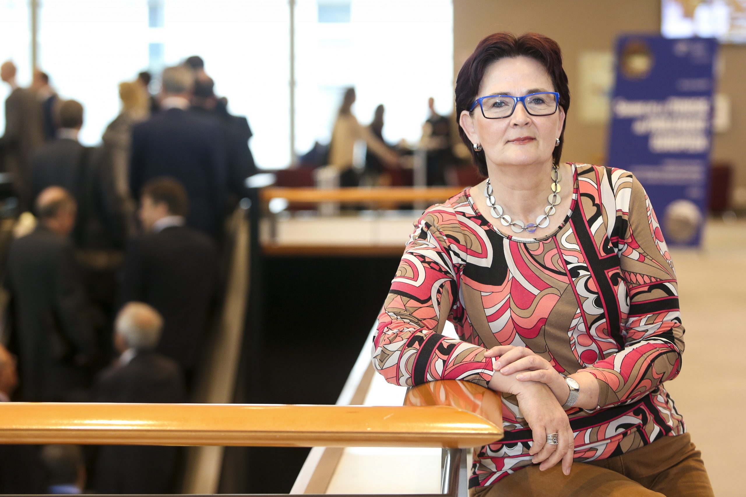 Birgit Sippel an der ASP-Rolltreppe